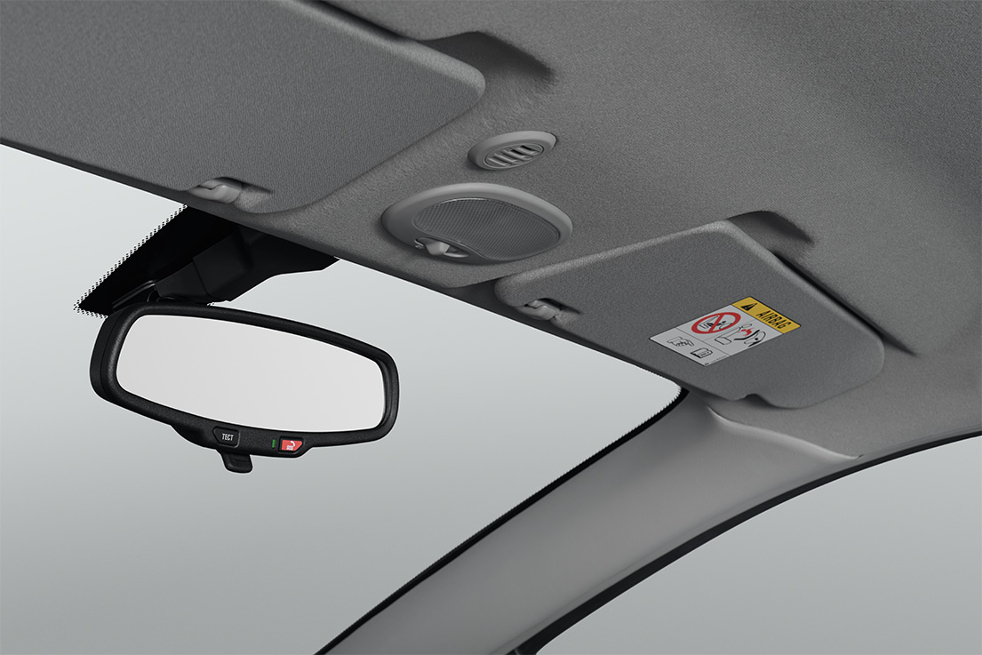 • Регулируемое внутреннее зеркало заднего вида
